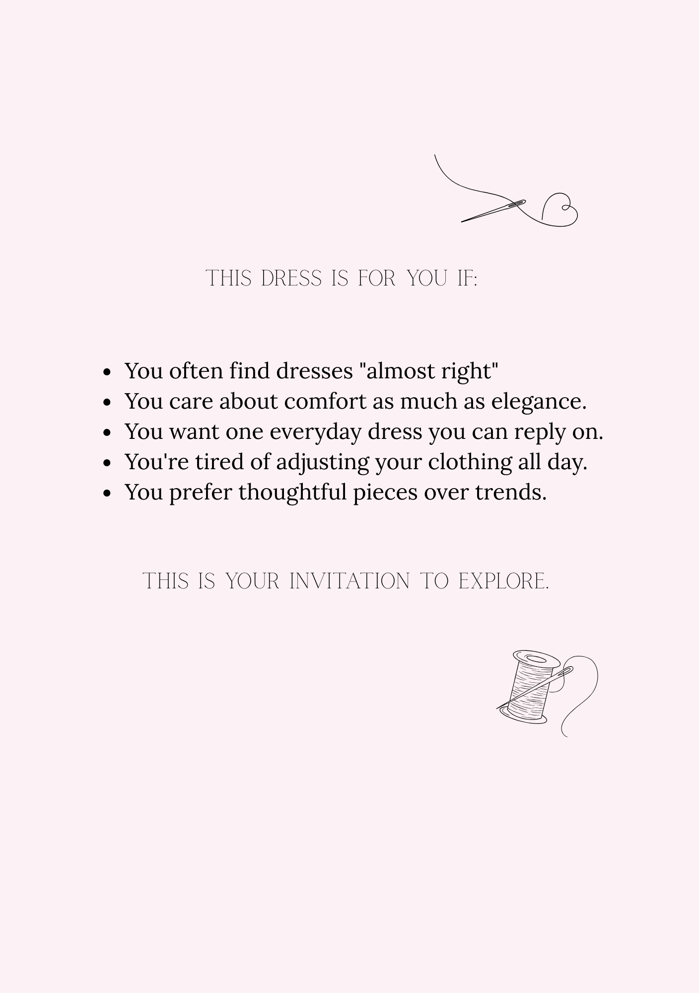 " Every dress is handmade to order using deadstock fabric. Designed for women who value comfort, versatility, and sustainability."